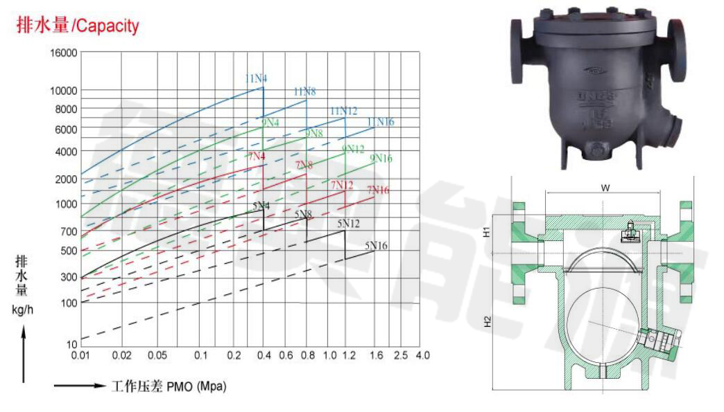 適用于大排量,連續疏水場合,自動排氣,法蘭連接,允許背壓度≥90%。