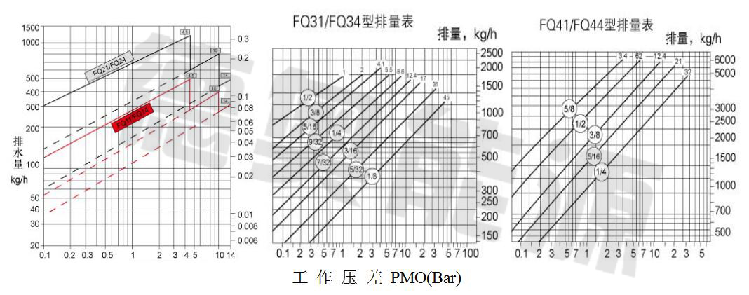 8、選型時請提供工作壓力、工作壓差、凝結水量、工作溫度、連接方式及標準;根據用汽設備正常工作時可能產生的凝結水量,乘以修正系數(一般2-3)得出排水量,然后對照排水量和壓差進行選擇。
