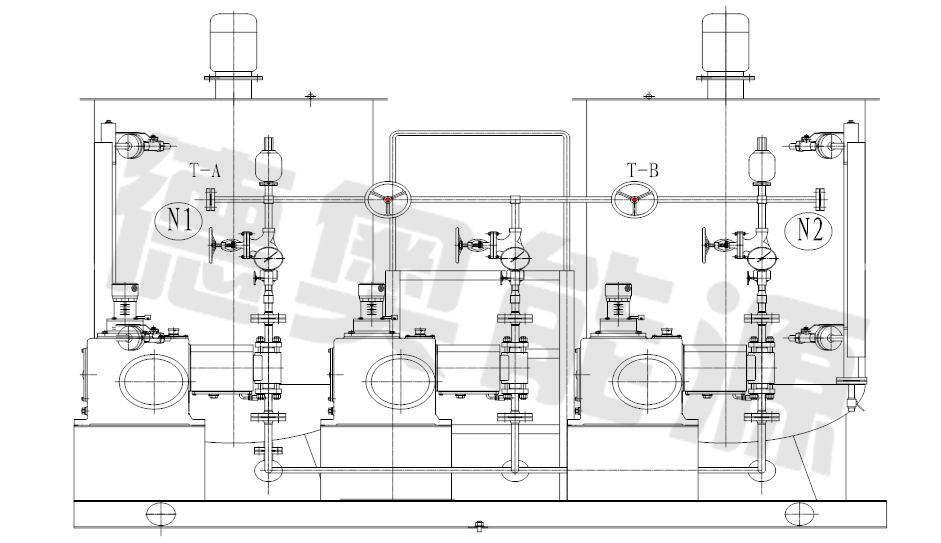 單元式的組合形式一般為一箱一泵,一箱二泵,二箱二泵,二箱三泵,其系統與爐內加藥裝置類同。