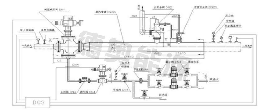 減溫減壓裝置由減溫減壓閥、節(jié)流孔板、電動給水調(diào)節(jié)閥、安全閥、節(jié)流閥、截止閥、止回閥、蒸汽管道、給水管、法蘭、緊固件等組成。
